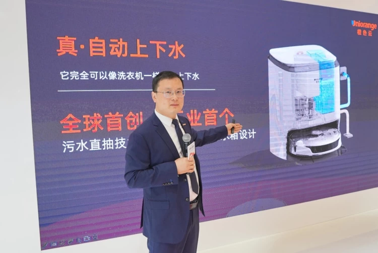 2023年4月27日,橙色云在中国家电及消费电子博览会(AWE2023)召开“协同研发,为爱共创”主题发布会,发布了橙色云清洁家电的全新力作——橙色云智能洗拖机器人i2。