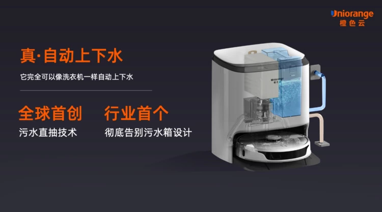 从传统家电产品来看,洗衣机、洗碗机这些涉及到用水的家电产品都具备自动上下水功能,加置了直抽式自动上下水模块的橙色云i2,无需人工加水、倾倒污水,让每一次清洁都像自动洗衣机一样省心。为解决经常清理集尘盒的困扰,橙色云i2 基站内置2.5L抑菌超大集尘袋,每次清扫完毕后,基站都会把主机的垃圾自动回收,彻底解放双手。