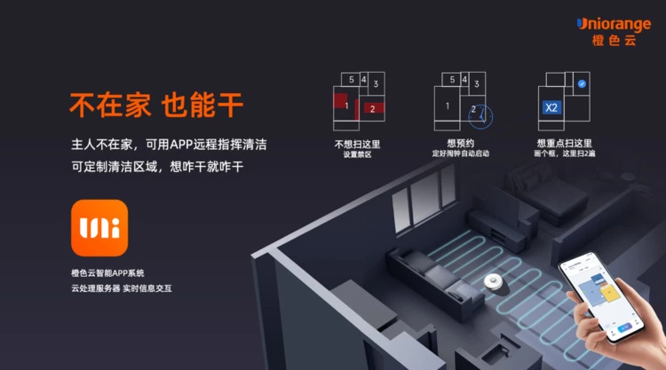 为满足消费者更加多元化的需求,橙色云协同研发团队走访全国各地上千个使用不同品牌扫拖机器人家庭,收集上万条用户意见,并归纳梳理出扫拖机器人8大使用硬伤,并将这些问题分解为800多项技术点,协同海内外1200名不同领域的研发工程师,历时3年,匠心推出这款让用户最省心的智能扫拖机器人——橙色云i2。