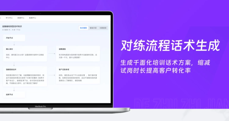 得助智能培训不仅仅是话术训练,其背后所映射的是无限调用、高度自动化、AI 计分、学练一体等多重功能的综合体现: