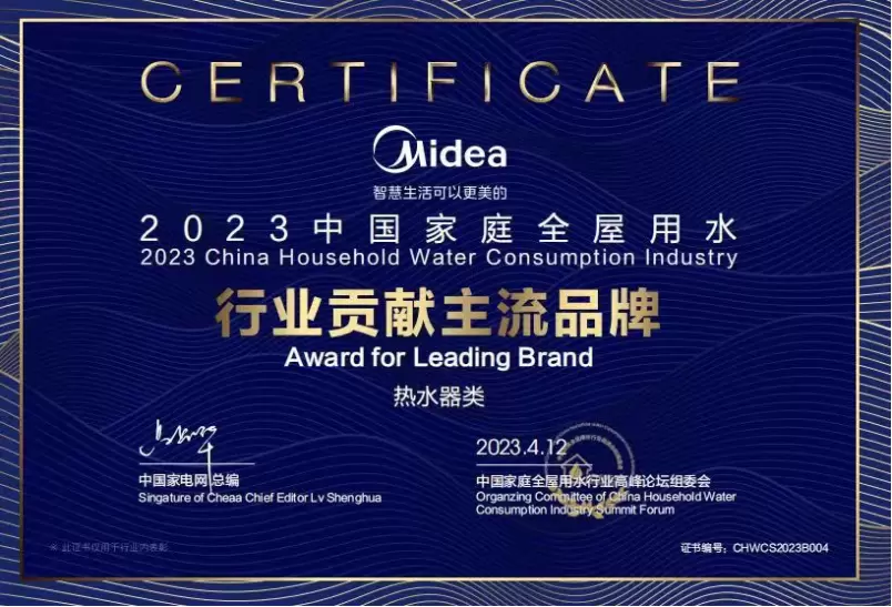 获权威认可!美的燃气热水器荣获2023中国家庭全屋用水行业三项大奖