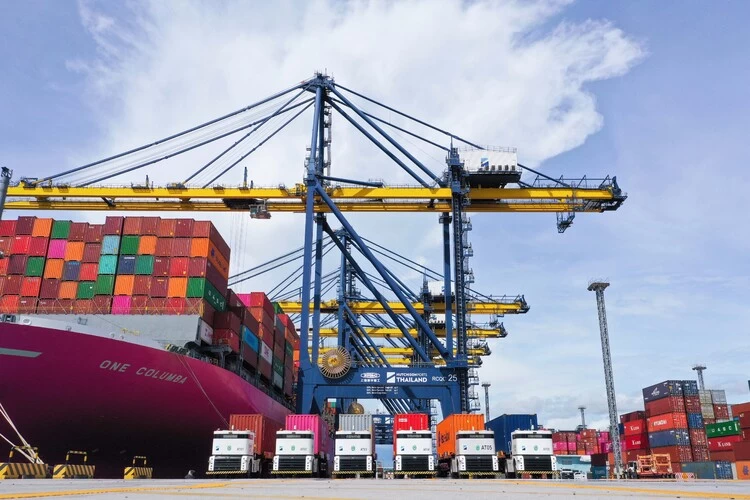 2020年4月,一批自动驾驶集卡从中国海港出发,运到和记港口位于泰国的林查班港口。