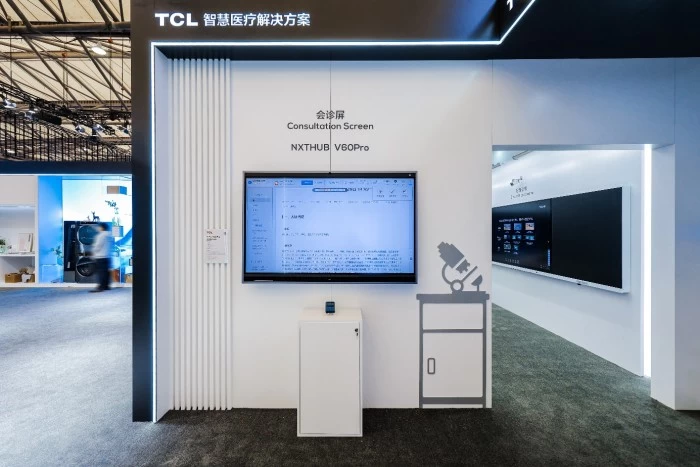 而在众多场景需求中,TCL智慧医疗、智慧银行场景解决方案也是相当重要的一环。针对TCL智慧医疗方案,TCL在现场展出示教室、远程会诊场景,通过TCL NXTHUB实现终端互通、信息发布、协助共享、远程交互,促进医疗资源多地多级协同管理。在智慧金融方案中,TCL针对银行营业区产品营销的需求,实现定制化交互界面、远程沙龙、云货架以及内容的集中发布和管理,助力银行的店面营销。