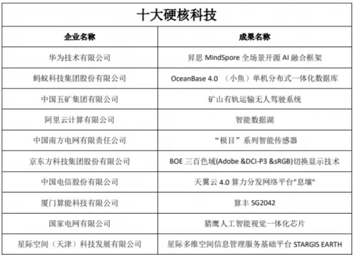 一同上榜的还有华为、阿里、五矿、国家电网、京东方、中国电信等公司的硬核科技产品。