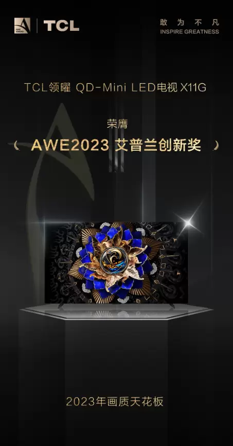 经过权威评审与层层筛选,TCL一举包揽四项大奖,其中TCL领曜QD-MiniLED电视X11G成功摘取艾普兰创新奖,又一次凭借其强大的科技实力和产品智能创新获得了行业及大众的广泛认可。