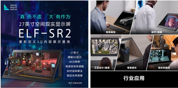 索尼的创新精神和独特的技术实力同样在商用产品领域得到了行业认可。同样获得“AWE艾普兰创新奖”的空间现实显示屏ELF-SR2,就是一款可以“让想象变为现实”的创新型产品。得益于三大核心科技——高速视觉传感器、实时渲染算法以及微型光学透镜,增强了更沉浸的3D影像效果,让创意真实可见。ELF-SR2适用于各种专业设置的真实空间影像,是许多商业应用的理想3D视觉媒体,从展览展示/教育、医疗健康、工业设计/建筑到零售展示、娱乐媒体等,ELF-SR2也为各行各业提供了将创新变得轻松可及的更多可能,也有利于行业用户进行服务创新和业务创新。