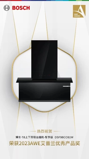 博世accent|line曜黑系列则凭借“凝练、至美、和谐”的设计语言获得行业认可,荣膺艾普兰设计大奖。这一套系将美学与创新技术出色融合,并搭建起厨电产品的紧密联系,完美融入厨房生活空间,为消费者打造更高雅的品质生活体验,套系中包含的下沉式升降烟机、隐藏式嵌入电磁灶、嵌入式蒸箱、嵌入式微波烤箱等厨电产品更能适配各式中西烹饪需求。特别是博世·下沉式升降油烟机,采用颠覆性、独特有辨识度的下沉式升降设计风格,打破常规烟机的设计形式,以低调含蓄的设计美学,彰显家居不凡品味;功能上更汇集博世家电最顶级功能配置和最高端智能感应技术,与高端智能隐藏式电磁灶搭配,为中岛烹饪提供完美解决方案,让消费者奢享大师厨房,轻松邂逅全球美味。