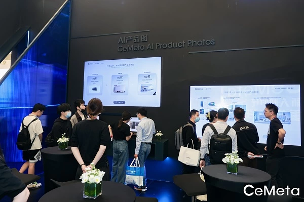 展厅的最后是很多品牌都非常感兴趣的“AI产品图产品”。传统的产品场景图制作方式需要经历选址、布景、拍摄、修图等复杂的流程,成本高、周期长。而在AIGC时代,作图不必如此麻烦。第一步,上传产品图片;第二步,选择合适的场景风格,AI即刻根据选定的风格创造海量产品场景;第三步,点击AI作图,即可AI合成产品与场景,输出“以假乱真”的高品质图片。还可以根据企业的视觉规范训练AI作图模型,出图效果完美满足品牌审美风格。让作图更好、更快、更省!除此之外,还可以通过场景拍立得的方式,制作更加精美的图片。企业提供三维模型,从CeMeta海量的虚拟影棚中选择合适的场景,点击拍摄按钮,即可一键拍摄,渲染出图。