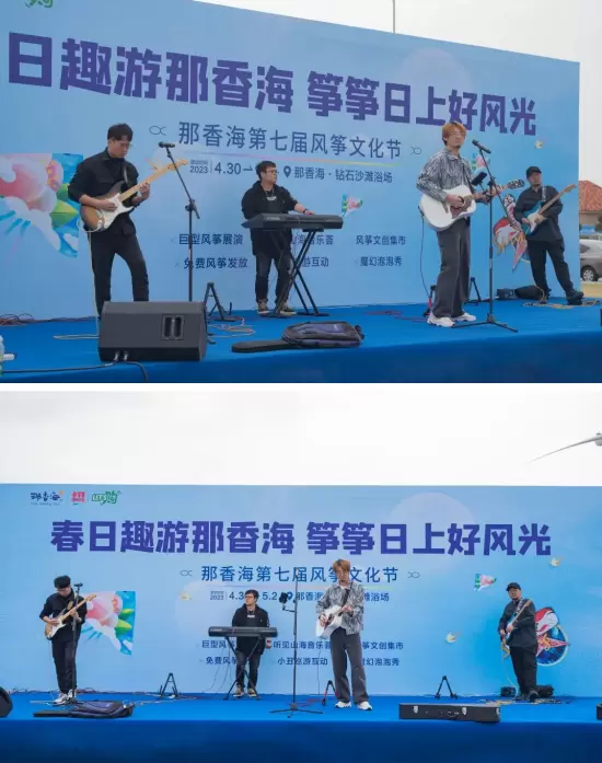 沙滩假日,最不可缺少的当然是音乐。在本次风筝文化节,我们邀请到实力歌手、乐队来到现场,演绎沙滩音乐荟的狂欢时刻。在早已准备好的舞台上,随着音乐的响起,听众的身体也随着节拍而律动,心事也随即散去,让无拘无束的自由和欢乐空气弥散在春末夏初的海风中。