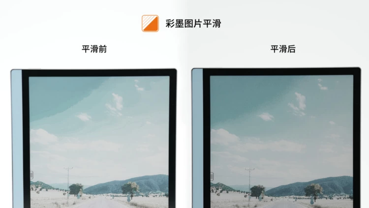 更值得一提的是,文石BOOX针对Tab10 C彩屏推出的图片平滑功能,可以模拟256级灰阶显示效果,让色彩过渡更加自然,有效降低阅读干扰,让黑白内容更加黑白分明,彩色内容更加鲜亮细腻。