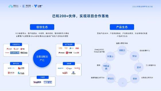 和上下游的数据库、BI、数据应用等厂商合作,提供全链路的大数据产品体系,加速数据项目的落地。