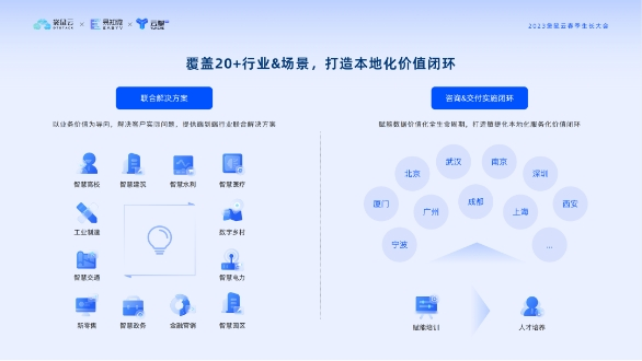 在联合方案方面,基于垂直行业一起打造端到端联合行业数字化解决方案,直达客户的业务场景,和数据价值。