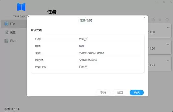 2、填写计划任务的相关信息,确认没问题点击确认即可点击确认,备份完成。