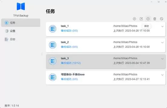TFM Backup(铁威马文件夹镜像备份)是一个数据备份工具,允许用户将本地的文件夹镜像备份到本地的其他文件夹,从而实现对重要数据的备份。