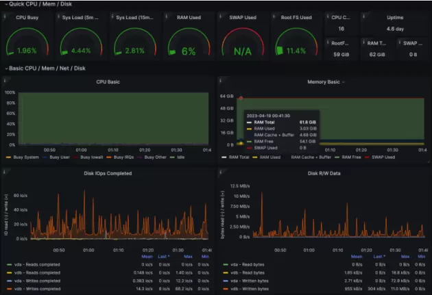 2023 年 4 月 23 日,观测云正式发布自研时序数据库 GuanceDB,并在当天应用到了观测云所有 SaaS 节点的底座。此次升级性能提升的效果立竿见影,对比之前使用 InfluxDB 的环境资源占用大幅降低、查询性能显著提升,我们成功地吃上了自己的狗粮。