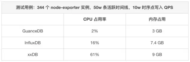 GuanceDB 资源开销:CPU 占用率 2%,内存占用约 3 GB。