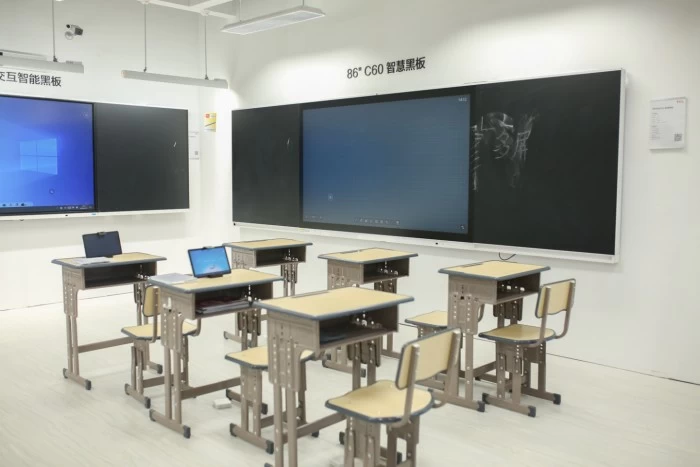 智慧黑板C60采用电容触摸技术,中屏采用嵌入式平面一体化工艺,四边没有突出,不易积累粉尘,在息屏状态下可以直接使用粉笔书写,同时左右两边的副板也可以直接使用粉笔书写,解决了粉笔书写面积不够的问题。C60采用了广角IPS硬屏,全贴工艺,可视角更大,亮度更高,坐在第一排边上的同学也不受到眩光的干扰。C60还可以与教育大屏端的T教云软件互联互通,通过讲台实现之前需要在大屏上操作的功能,实现授课界面大小屏同屏,让授课过程更加高效。