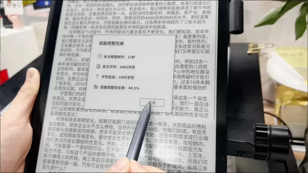 据悉,经过规整、精简处理的内容,原文忠实度能保持96%以上,文章篇幅可以缩短至20%到40%,让用户的阅读效率提高50%以上,充分体现了什么叫“浓缩的才是精华”。据实际测试,原文有2462个字符的会议内容,经过“语篇规整”功能整理,最终生成了一份1095字的精简版,去除了冗余内容,把开会的重点都保留了下来,这“一键化繁为简”的操作,着实让人惊艳!