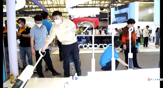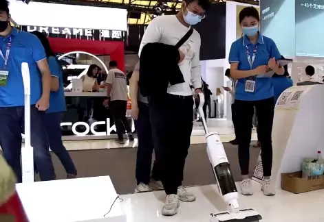 海清新(HIKINS)展位专业人员耐心向观众介绍洗地机的特点和应用场景,并提供现场演示,让大家更深入了解这款家用清洁设备。在演示完毕后也让参展人员亲自上手体验了产品,实际感受清洁效果。