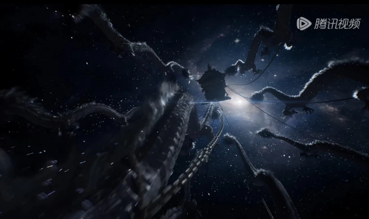 《遮天》小说中对“九龙拉棺”的描述:每具龙尸都长达百米,犹如铁水浇铸而成,充满了震撼性的力感。在首集画面中,九条巨龙拉着青铜棺椁蜿蜒而来,龙鳞棱角分明,龙身乌光烁烁,连背上的毛流感都处理到了极致......客观的说,这次九龙拉棺的建模细节抓得可以说是很到位了,唯一不足的就是运镜这块没有凸显出百米巨龙的大气磅礴,九龙的躯干虽然惊艳,但没有生机,镜头前龙身不会摇摆,少了些震撼感和真实感。