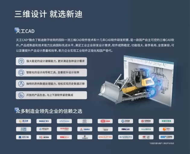 在展会现场,新迪数字的技术专家们以生动、直观的方式向参展嘉宾展示了该解决方案的各种功能和优势,并重点展示了其最新推出的三维CAD国产替代软件——天工CAD。