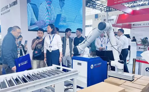 该码垛工作站占地空间小,“身手”敏捷灵活,码垛速度、垛型等均可按需设置,吸引很多参展人员驻足观看、交流。