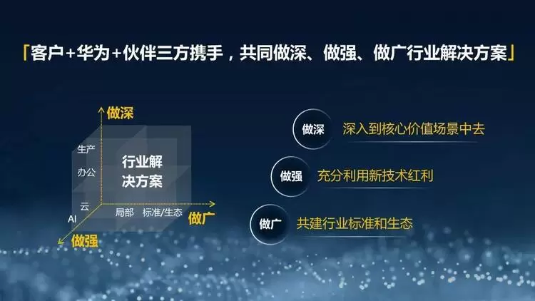 基于这样的诉求,需要客户+华为+伙伴三方携手,共同做深、做强、做广场景化解决方案,助力数字化转型。