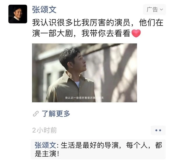 短片《从明天起,做一个幸福的人》刷屏朋友圈后,#张颂文出现在我的朋友圈#登上微博热搜,引发更多网友疯狂刷新朋友圈为张颂文新作点赞打call。