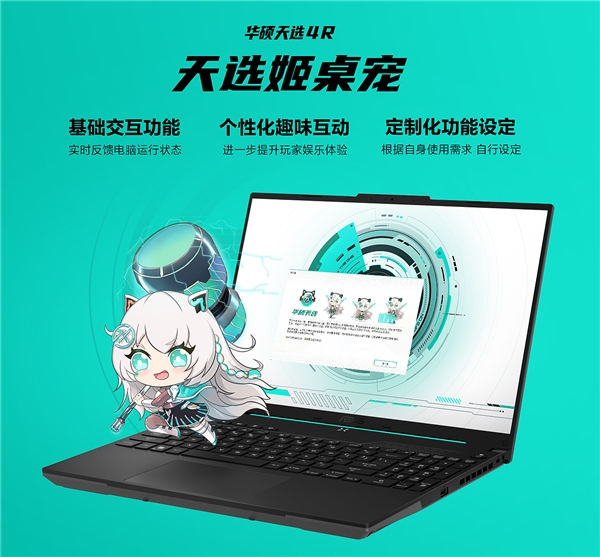 不仅拥有前沿的硬件支撑,天选4R在软件方面同样表现出色。全新天选姬桌宠拥有多重操作功能,不仅可实现动作交互,还可实时显示系统状态(如资源占用率)。在奥创智控中心,拥有一键更新驱动、手动调教性能、AURA神光同步,GameVisual色彩调节等功能,提供个性化十足的用机体验。