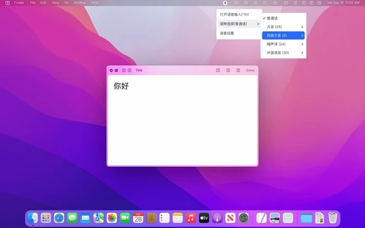 与此同时,为满足不同用户的“快打”需求,全新macOS版输入法搭载了1分钟400字的智能语音输入,支持25种方言,5种民族语言以及30种外语;在开启“随声译”功能后,可实现中文与24种外语的实时互译。在该AI能力的加持下,讯飞输入法不仅能进一步解放双手,还能准确识别用户不同口音和语言,大大提升打字效率。