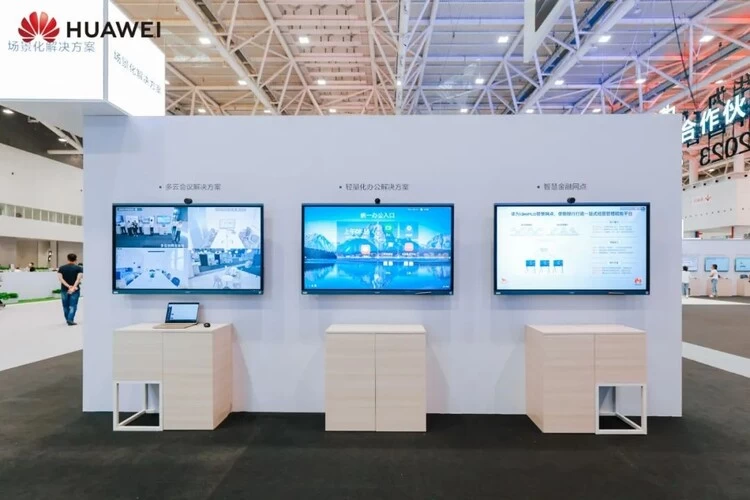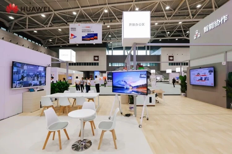 在智能协作展区中,行政会议室场景稳占C位,华为IdeaHub更是醒目。这是面向企业办公与团队协作场景,以华为CloudLink云视频平台为基础,深度集成了会议预订运维、智能控制、会议发言、无纸化等系统,为企业打造简单易用、场景化管控、人工智能的高效协同会议。多云协同解决方案,使能会议数字化,解决了传统会议室会前准备工作复杂、会中体验差、会后统一易遗漏等问题,为企业提供贯穿会议全流程的数字化办公体验,全方位释放组织效能。
