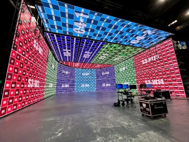 2021年,由洲明ROE参与打造的温哥华占地2044平米 的虚拟影棚,以LED总面积达到前所未有的720平米 ,成为当时全球最大的“LED大屏+xR虚拟”技术案例(获得吉尼斯世界纪录)。其中,采用了洲明2500块BP2V2,760块CB5 LED拼接单元,是EPIC Games、NVIDIA 、Brompton及洲明ROE等全球专业化音视频技术团队的精心力作。
