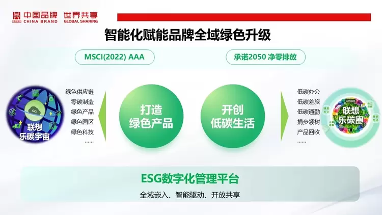 在绿色价值上,联想将自身39年来实践经验,进一步浓缩成ESG的咨询服务,沉淀出零碳园区、绿色供应链、零碳制造等方案和服务,不断与生态伙伴进行共创ESG生态,助力更多实体企业加速品牌的绿色升级。