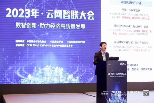 2023年5月9-10日,由中国通信标准化协会、中国通信学会和中国信息通信研究院指导, CCSA TC610 SNAI推委会主办的“2023年·云网智联”大会在北京隆重召开。本届大会以“数智创新、助力经济高质量发展”为主题,汇聚了产业界近百名行业大咖、专家学者、企业代表,聚焦“云网融合、算力网络、自智网络、确定性网络、智算中心网络”等多方面热点话题发表演讲,探讨网络技术和ICT基础设施的发展趋势及演进方向,共享成果和实践。