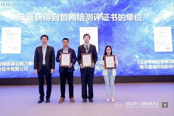 CCSA TC610推委会根据自智网络分级测评标准,在2022年组织开展了面向云网专线和云光专线两个业务场景的测评工作,并在本次会上,对华为《云网专线自智网络基础能力解决方案》、《云光专线自智能力解决方案》;烽火通信《云光专线自智能力解决方案》颁发自智网络等级能力测评证书。