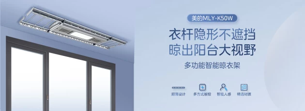 而在阳台吊顶场景中,美智光电推出了全新的智能晾衣机产品。一般来说,阳台吊顶距人都有60厘米以上的差距,传统晾衣杆用起来又烦又累,而美智光电的智能晾衣机采用多方式智控,解放双手,晾衣体验更轻松自由。比如智能晾衣机K50W拥有隐形置顶的设计,整机折叠厚度11cm,不挡阳台采光 。K50W有58个挂孔和6根横杆,可以轻松包揽全家的衣物。同时该款晾衣架采用多方式智控:遥控器、小美音箱、手机APP和墙壁开关。
