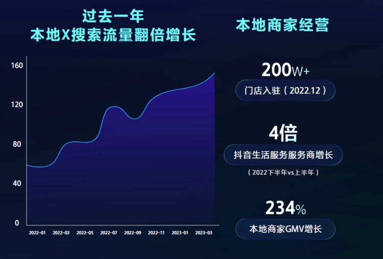 与电商商家相同,翻倍增长的搜索流量同样为本地生活领域带来了无限商机,越来越多的本地商家主动拥抱线上经营。截至去年底,有超过200万门店入驻抖音,并在巨量引擎产品与服务的加持下,实现GMV的快速增长。