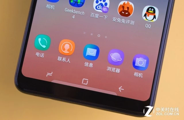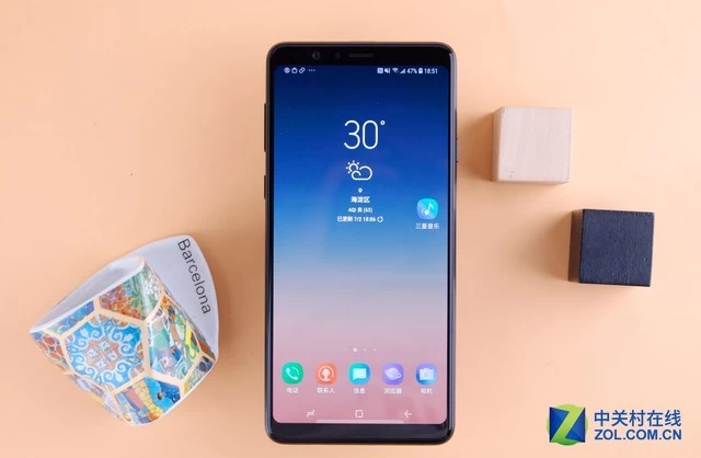 和主流全面屏采用的“刘海屏”不同,三星Galaxy A9 Star这块屏幕一体性很高,看起来也十分完整,外加大圆角的切合工艺以及整机方正的轮廓,均体现出了三星手机独有的对称之美。