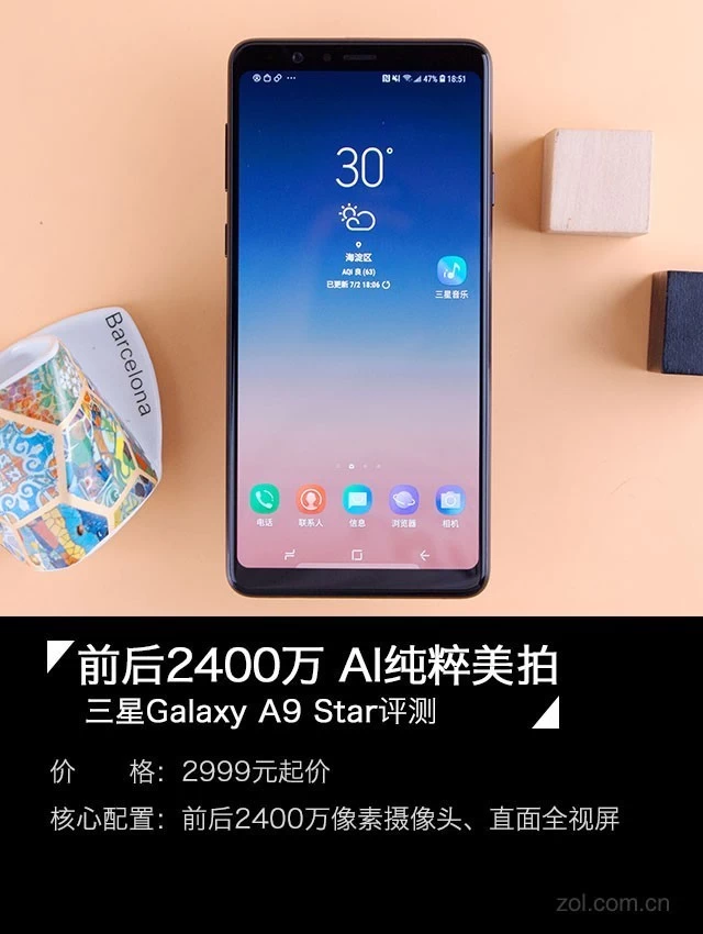 在这个智能手机市场极度繁荣的大环境下,各厂商的技术轮番进化,从而实现技术普惠,三星Galaxy A9 Star的问世再度抬高了全面屏手机的拍照水准:前后2400万 AI纯粹美拍的拍照素质十分了得。