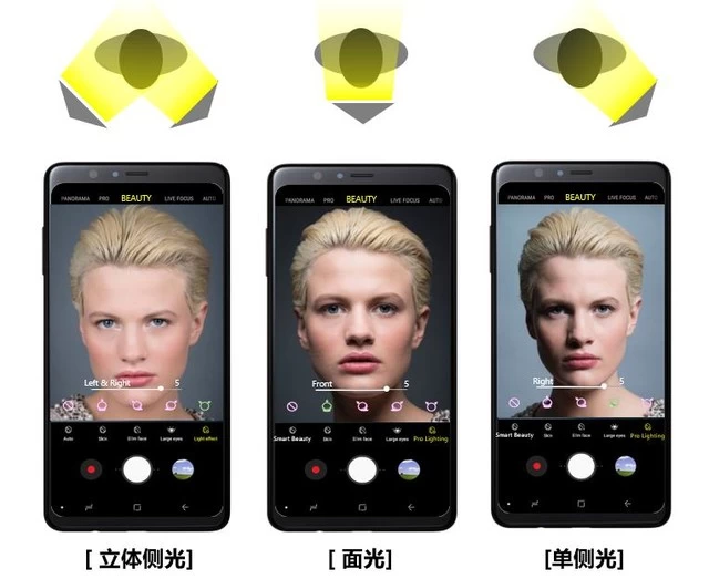 摄影棚光效是三星Galaxy A9 Star在拍照层次上的一大亮点,利用大数据的专业算法,拍摄出影棚的效果,拥有立体测光、面光、单侧光等多种光效。