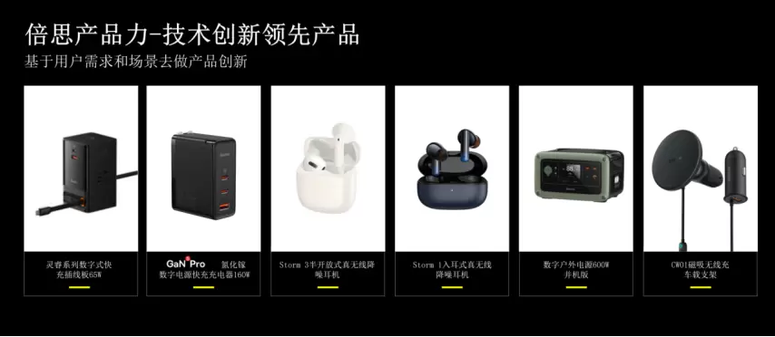 事实上不仅仅是充电,音频、创新电子都是 Baseus倍思从用户体验出发做技术与设计创新的产品品类。如何去做创新,Baseus倍思的优势一向是新场景洞察、新服务洞察。一个产品首先它要提供用户需要的功能,好的产品还能够解决用户当下的使用痛点。