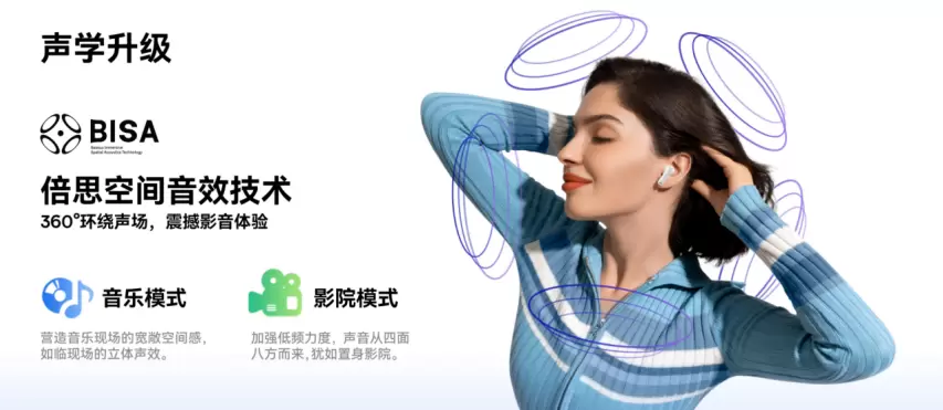 Baseus倍思音频围绕「体验、声学和性能」三项标准,自主研发推出包含Baseus倍思声学金标在内的多项技术,与WANOS全景声联合开发BISA倍思空间音效技术,让更广大用户以更低的门槛体验到声音的美妙。
