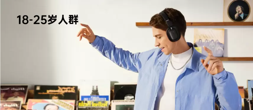 其次从用户角度观察,Baseus倍思的用户群主要集中在 18-25 岁,他们热衷于追求新生活方式,他们对于个性、对于潮流有着自我理解与表达,同时,经济能力有限也是特征之一。在这个年轻群体中,头戴式耳机成为了一件具备强烈社交娱乐属性的产品。