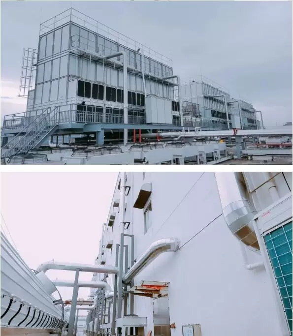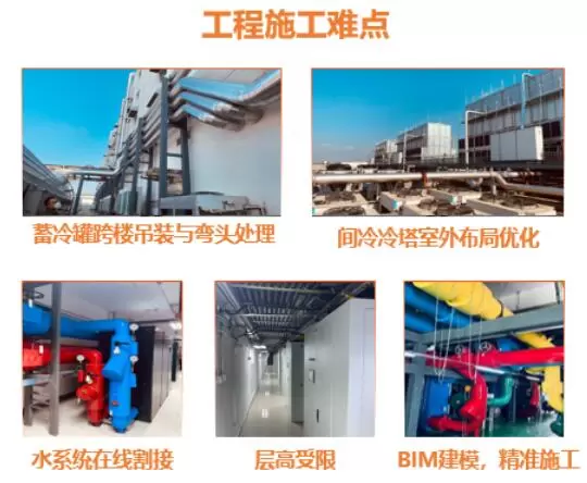 因为机房靠近居民区,空间非常受限,需要对蓄冷罐进行跨楼远距离吊装,对数据中心顶层原有室外冷凝器进行布局优化。为了保证机房业务运行不间断,需要进行水系统在线割接。