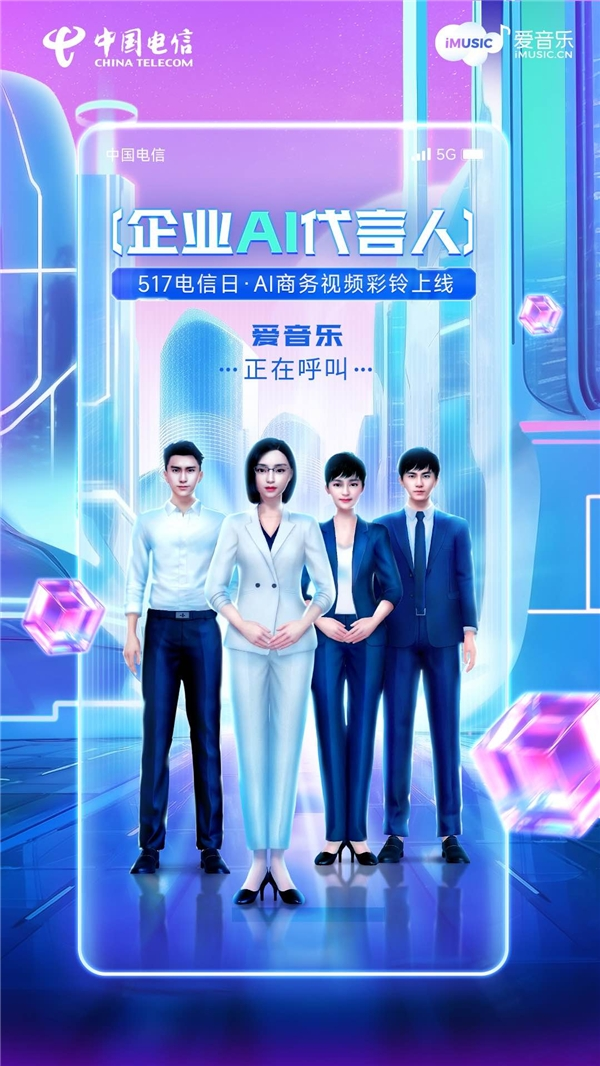 5月17日,中国电信天翼爱音乐文化科技有限公司发布3D数字人AI视频彩铃、AI商务视频彩铃两大产品,通过5G+AI等前沿技术的深度融合,为用户提供更智能、个性化的AI视频彩铃产品及优质服务体验,全面拓展AI数字人应用新维度。