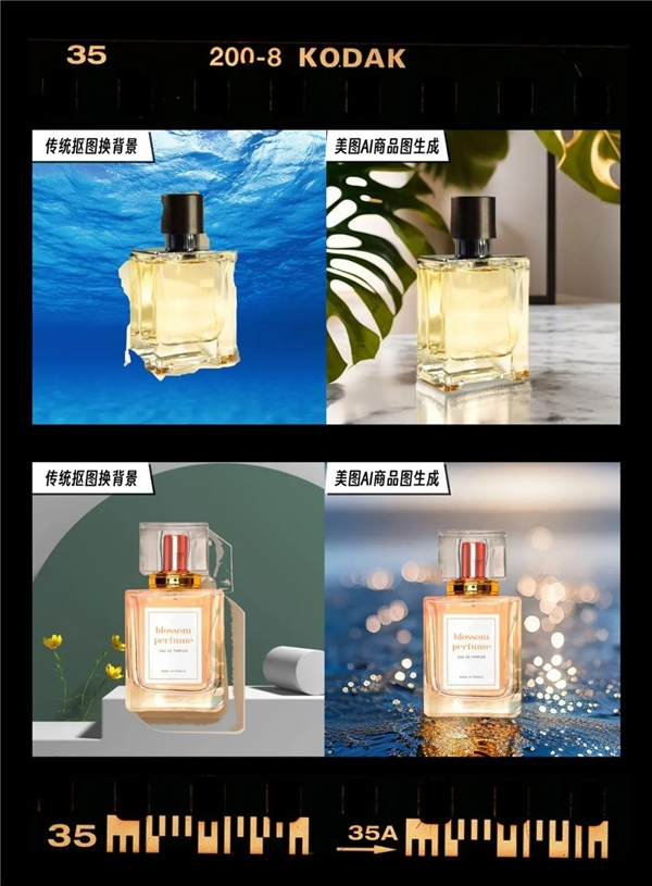 与传统抠图换背景不同,美图“AI商品图”功能,为电商商家提供更高效、更经济的产品图制作方案。用户只需要随手拍一张产品图,上传后即可实现自动智能抠图和AI生成多场景商品图,无需布置专门的拍摄场景,也不需要渲染处理。该功能还支持自动识别产品类型并给到相应场景推荐,以保证更具个性化和适配度的场景效果。除了静物摆拍图外,该功能还可以生成局部上身效果图,不用聘请模特就能还原商品真实使用场景。