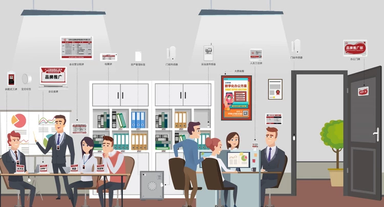 云里物里数字化办公解决方案针对办公场景下不同信息展示媒介,利用一体化的电子墨水屏电子标签代替传统的纸质信息展示媒介,将包括会议桌牌、工位牌、办公门牌、通知公告牌、桌面日历、工牌等在内的传统纸质办公信息显示媒介转变为能实现数字化显示的电子标签,实现不同场景下信息快速更新的功能;同时打通办公系统,在会议管理、通知管理、访客管理、分公司管理等多方面,实现办公场景的统一化管理,高效运作。