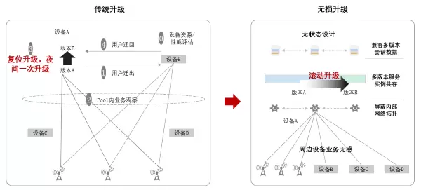 当前,5G已在全球进入规模部署阶段,日益多样化的5G业务要求核心网具备快速响应、灵活迭代的能力。传统的升级方式在升级过程中需中断网元承载的业务,这种业务上下线可能导致企业用户的产线停产、数据不可用,对企业生产效率带来较大影响。