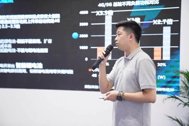 拓邦股份销售经理胡金屿在展会现场发布通信备电智能锂电池解决方案