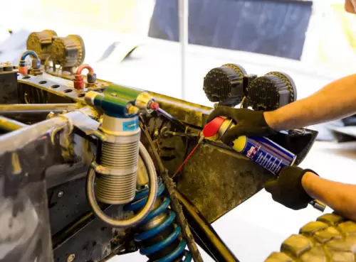 在WD-40品牌不断拓展的产品线中,其中尤为引人瞩目的是“WD-40专业赛车养护解决方案”。它是针对赛车领域的特殊需求,为赛车队提供的一系列高性能的维护和保养产品。可以为拉力赛场上的赛车提供清洁、除锈和润滑的功能。通过润滑金属部件、保养橡胶部件和清洗零部件等方法,有效解决赛车悬挂异响、赛车线束维护、转向沉重或转向盘回位不良、刹车不灵敏等问题,满足车队技师高效维修与保养需求。